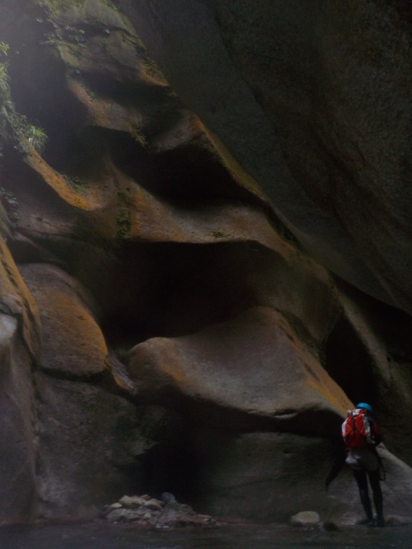 Este descenso lo podríamos dividir en dos partes muy evidenciadas; en la primera de estas partes nos encontraremos con un seguido de pasillos y marmitas bien excavadas, teniendo la oportunidad de realizar algún que otro salto y deleitarnos con la exuberante majestuosidad del cañon. Por contra, en el segundo tramo, claramente diferente, amplio y abierto, nos veremos obligados a nadar buenas porciones de él, así como a caminar hasta la saciedad.
