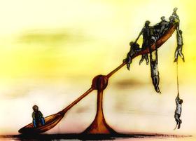 Esa minoría que ostenta el poder económico, es la que también le indica y ordena a la clase política las directrices a seguir; esa minoría precisa de una clara diferenciación piramidal; de cuerpos y mentes amedrentadas, de algunos pies que aplasten otras cabezas; abducen y promulgan la discordia, sus intereses reniegan de la paz e incitan a la guerra.